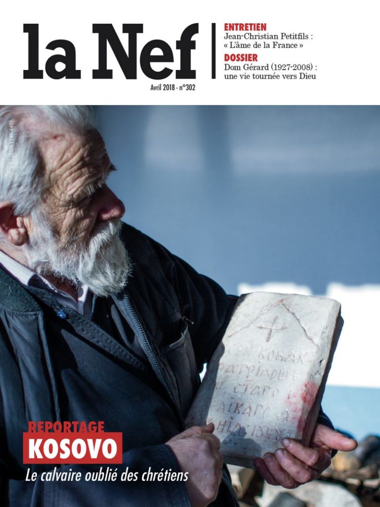 Dans son édition du mois d’avril, le mensuel catholique de référence consacre sa Une au « calvaire oublié des chrétiens du Kosovo ». Dans deux doubles pages, La Nef dresse un panorama de la situation du Kosovo dix ans après la proclamation de son indépendance en février 2008 en insistant sur « le sort des chrétiens de l’ex-province serbe [qui] n’a cessé de se détériorer dans une totale indifférence internationale. » L’épilogue de ce dossier spécial est dédié à l’action humanitaire Solidarité Kosovo, retranscrit ci-après.